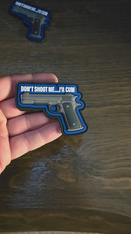 Funny PVC Morale Patch – Don't Shoot Me I'll Cum, Durable Hook & Loop Gear Patch for Bags, Vests & Jackets