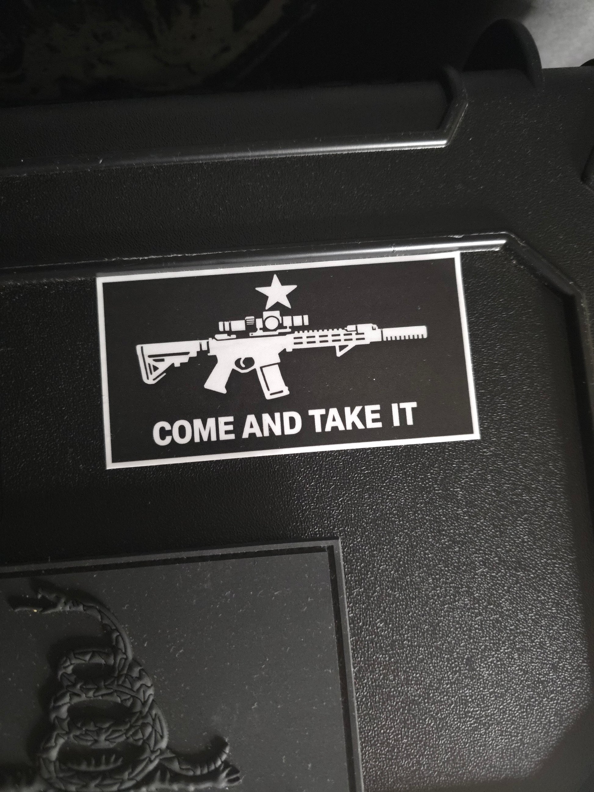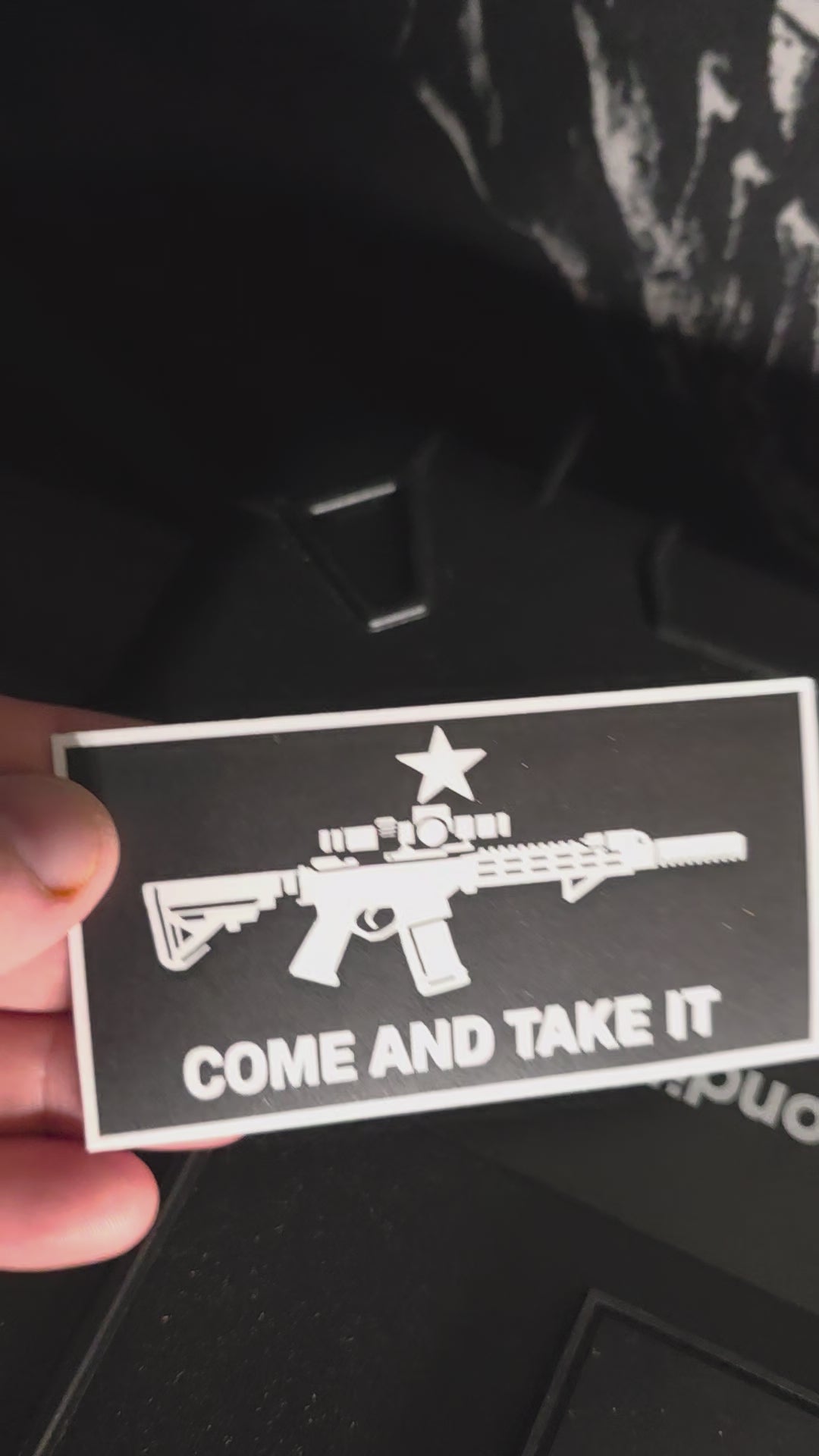 High-quality 3x2 “Come and Take It” vinyl sticker. Built for durability and clean detail, this premium decal delivers a sharp tactical look whether it’s on your truck, range gear, laptop, water bottle, or EDC setup.