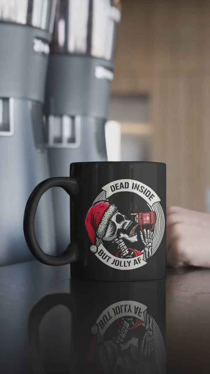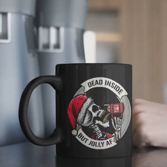 Dead Inside But Jolly AF Coffee Mug – Dark Humor Christmas Skeleton Santa Mug – Holiday Gift for Coffee Lovers