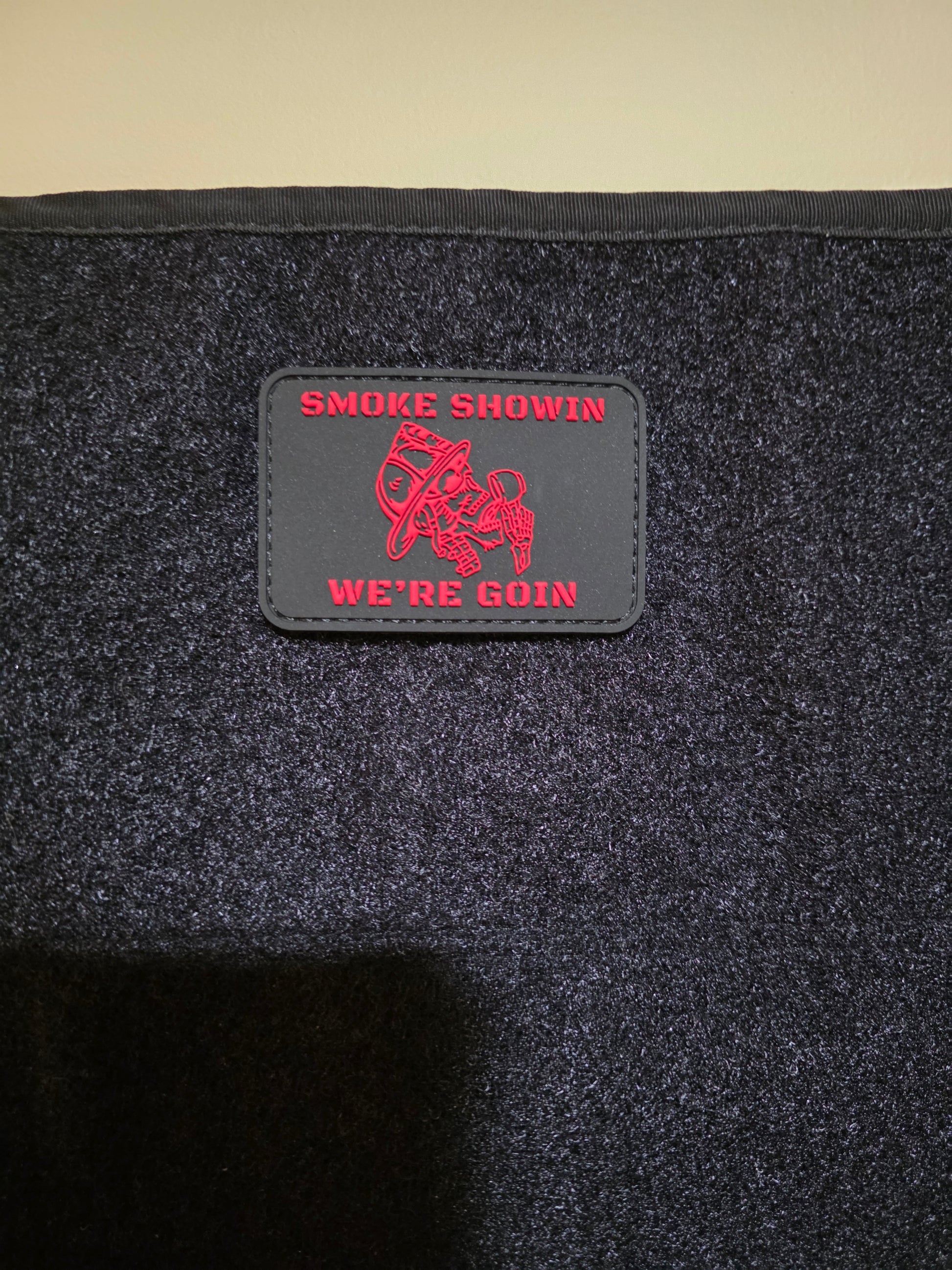SMOKE SHOWIN Patch – Firefighter Morale Patch | Hook & Loop Backing | Bold Red Tactical Gear for Firefighters, EDC Bags & Gear