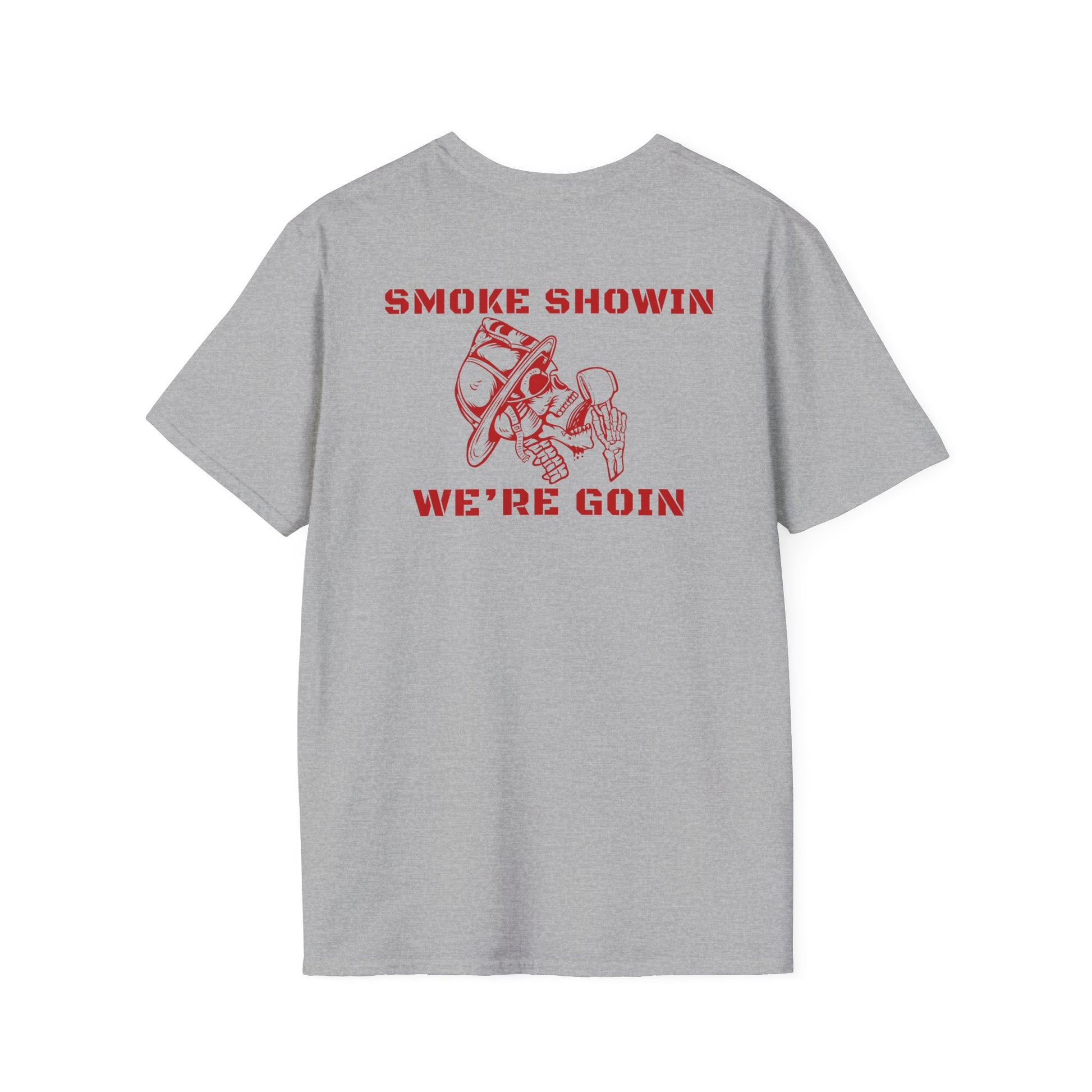 Smoke Showin’ We’re Goin’ Firefighter Skull T-Shirt | Red Graphic Fire Dept Tee